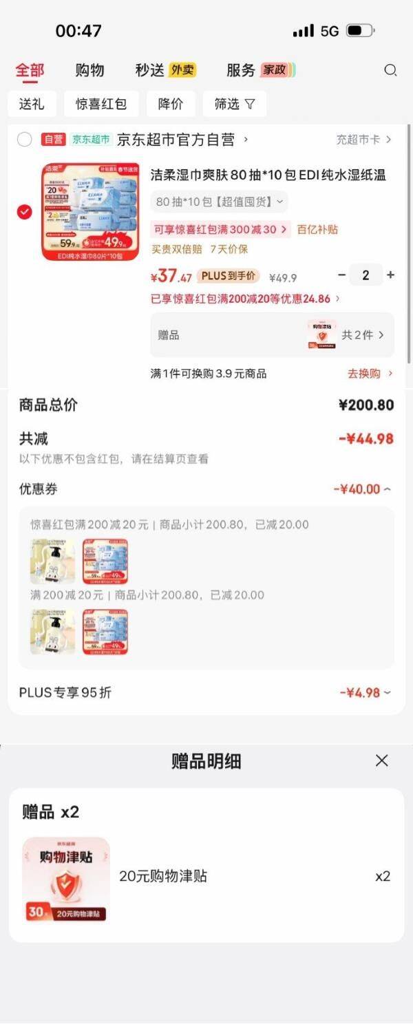 洁柔湿厕纸益生菌80抽*4包 洁厕湿厕纸纸巾乳酸菌厕纸湿巾可冲入马桶