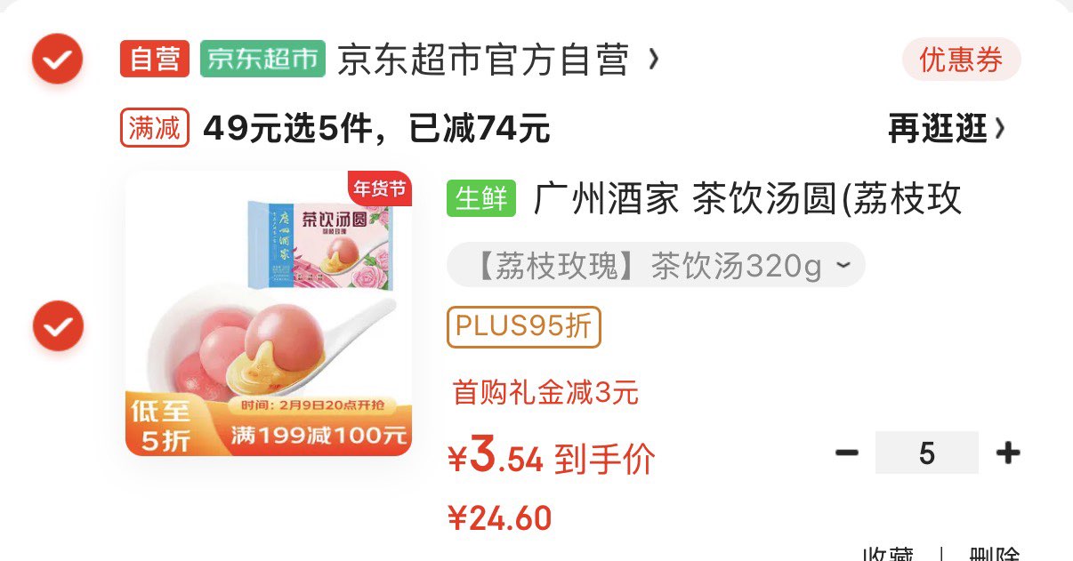 【6折】广州酒家 茶饮汤圆荔枝玫瑰320g 16粒 元宵汤圆 早餐夜宵小圆子年货送礼