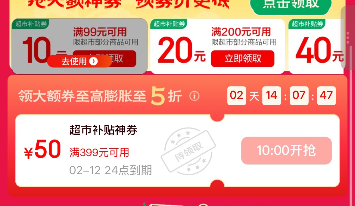 10点 重点抢 超市膨胀券