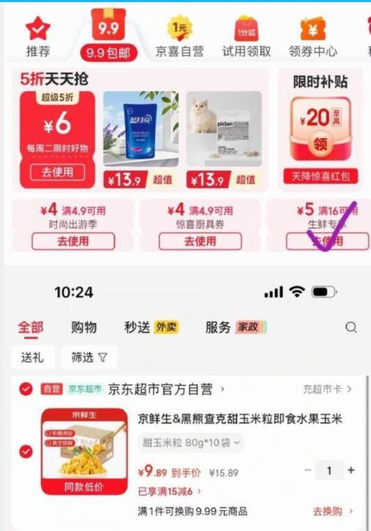 京鲜生&黑熊查克甜玉米粒即食水果玉米粒80g*10袋低脂源头直发