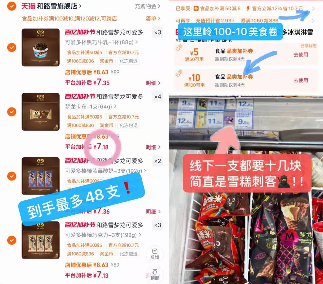【拍18杯更划算-部分退款不会发货】八喜冰淇淋60g/65g/68g任选
