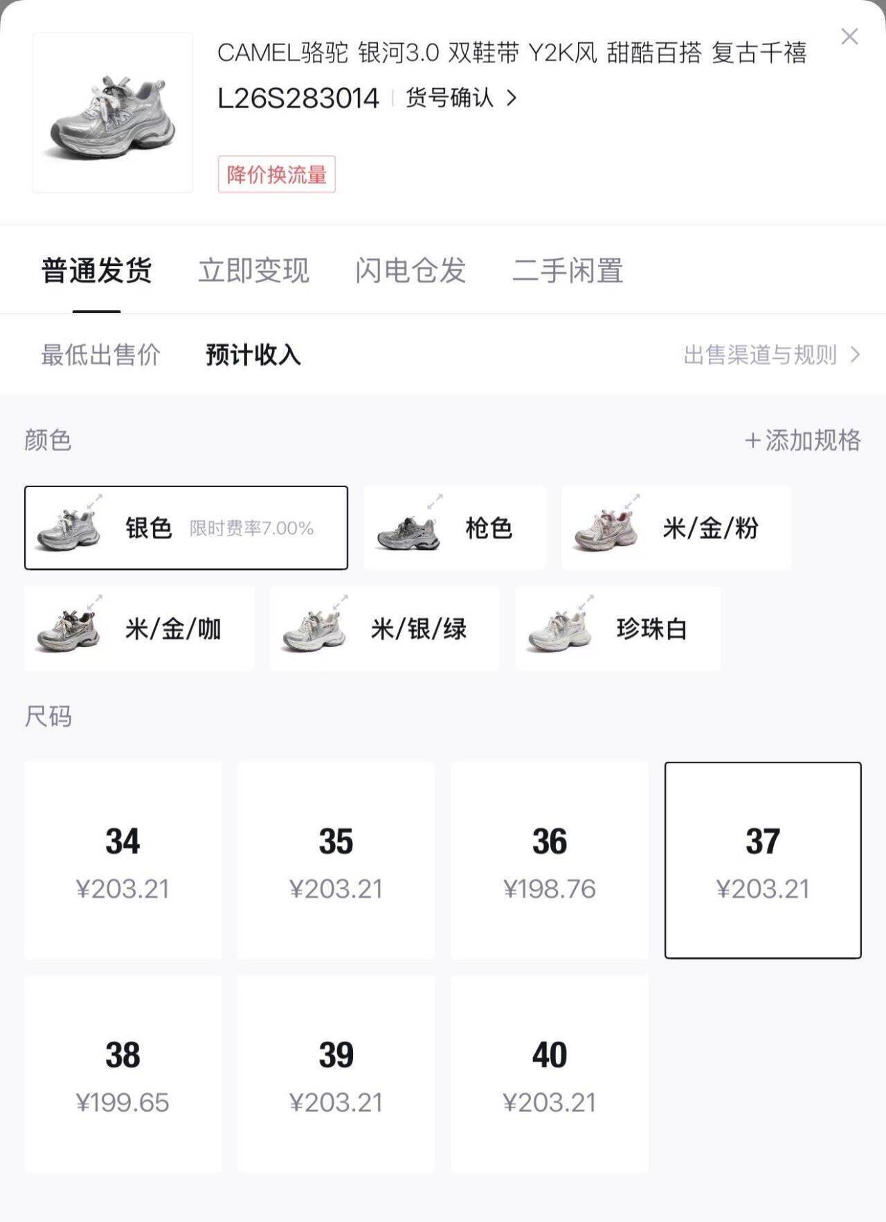 骆驼(CAMEL)耀月2代老爹鞋女厚底运动休闲鞋 L26S283069 米/金/粉 35