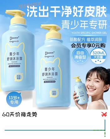 袋鼠杰克青少年沐浴露 温和洁净 舒润保湿儿童沐浴露控油爽身沐浴乳12岁+ 【青少年专研】沐浴露520ml*1 青少年沐浴露热销榜Top1
