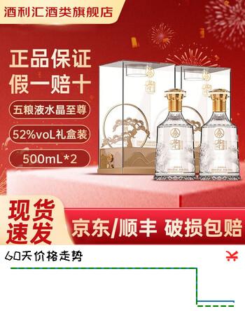 五粮液(WULIANGYE)52度500ml 至尊水晶系列 浓香型白酒 精美礼盒装 过节送礼宴请 52度 500mL 2瓶 送精美礼袋