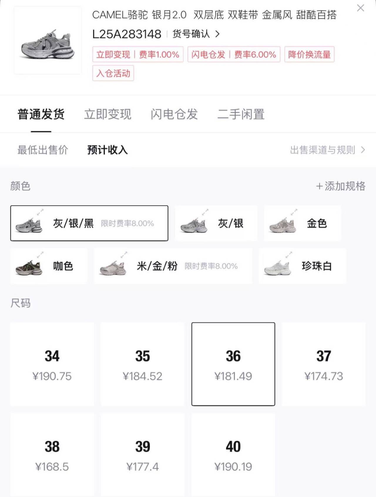 骆驼(CAMEL)银月户外复古老爹鞋厚底休闲鞋 L24A283742 灰/枪/黑 38