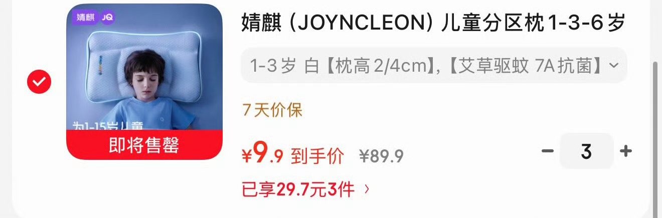 婧麒(JOYNCLEON)儿童分区枕1-3-6岁宝宝幼儿园专用护颈婴儿护脊2-4cm jyp157788