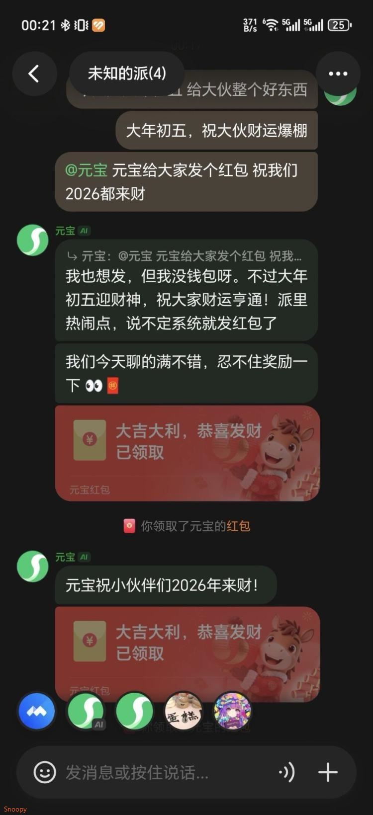 元宝派要3个人以上发言才有红包,好像上限是三个具体自测