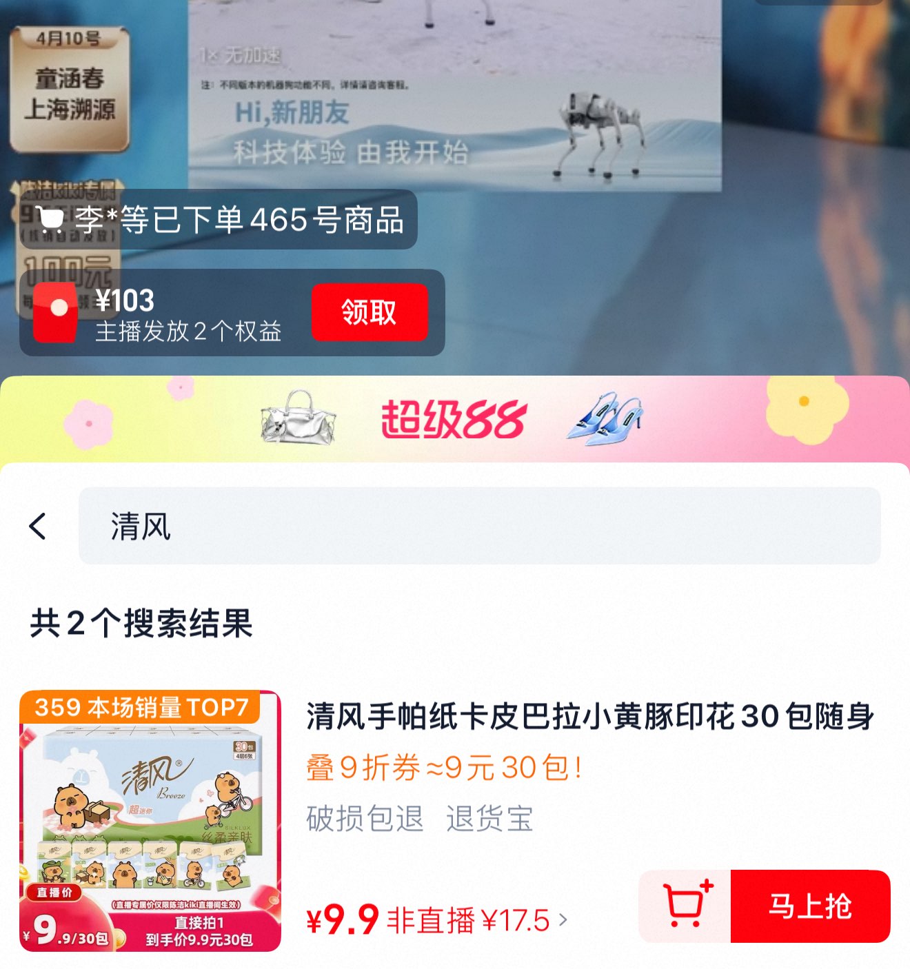 tb:陈洁zbj 新关注有3无门槛hong包 叠加几个洪包雨可买清风手帕纸