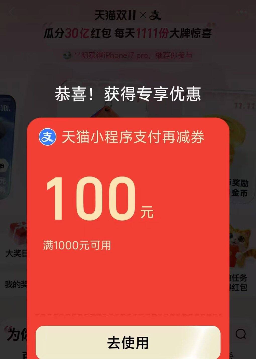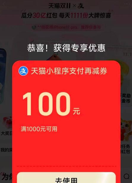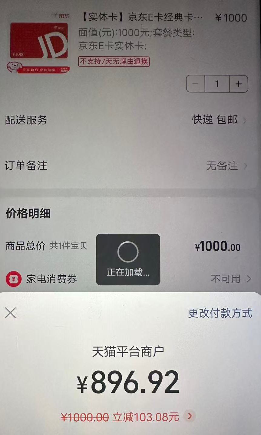 支付宝搜1111抽中1000-100可以买e卡