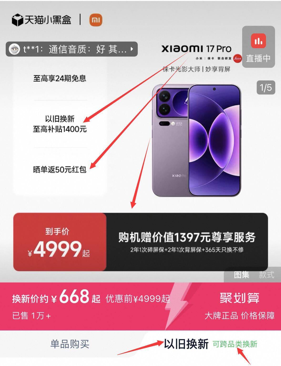 小米手机 页面可选择以旧换新 至高补贴1400