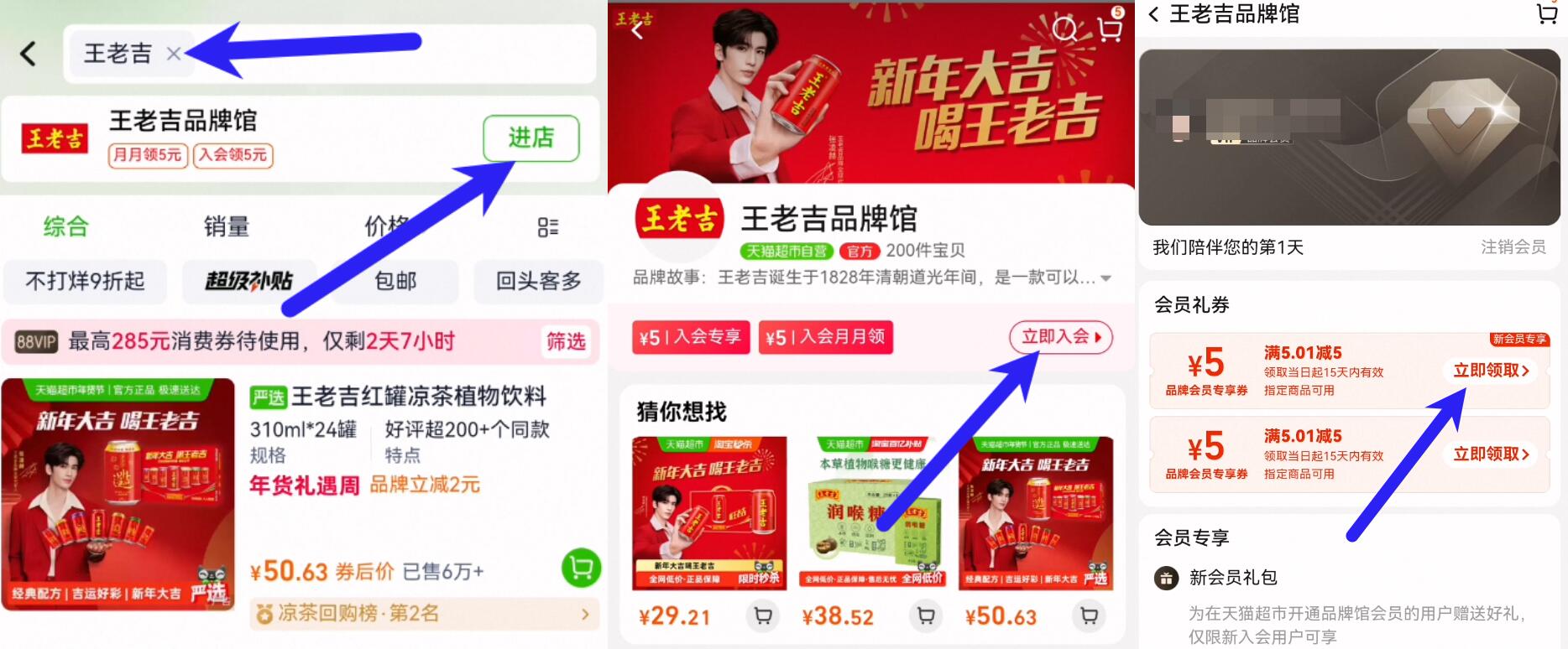 超市首页搜索“可口可乐”,进入品牌馆领99-15券