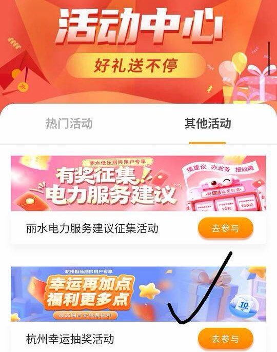 杭州抽3-100电费有惠券 可抽2次