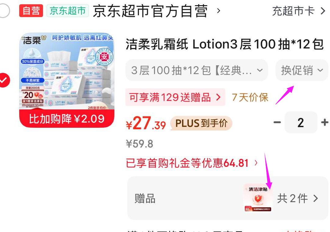 反馈楼上不用凑小湿巾,如果是学生号改一下促销的价格就可以了。 速度冲吧。这个纸好用
