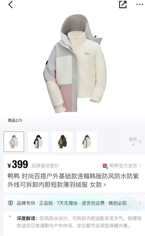 【鸭鸭】三合一连帽羽绒服