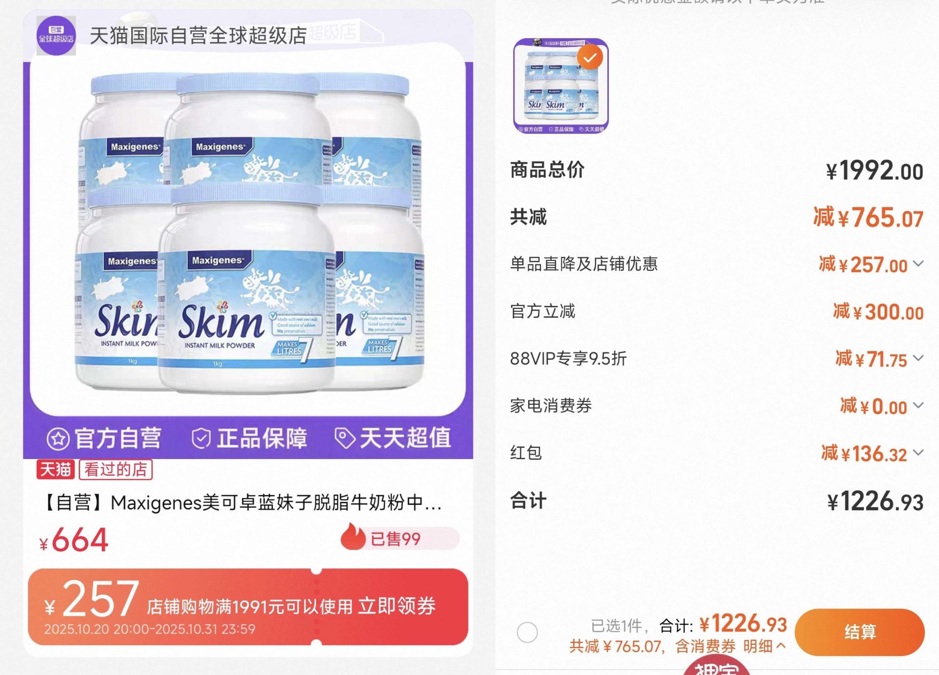 数量13,叠加9折券下单4315