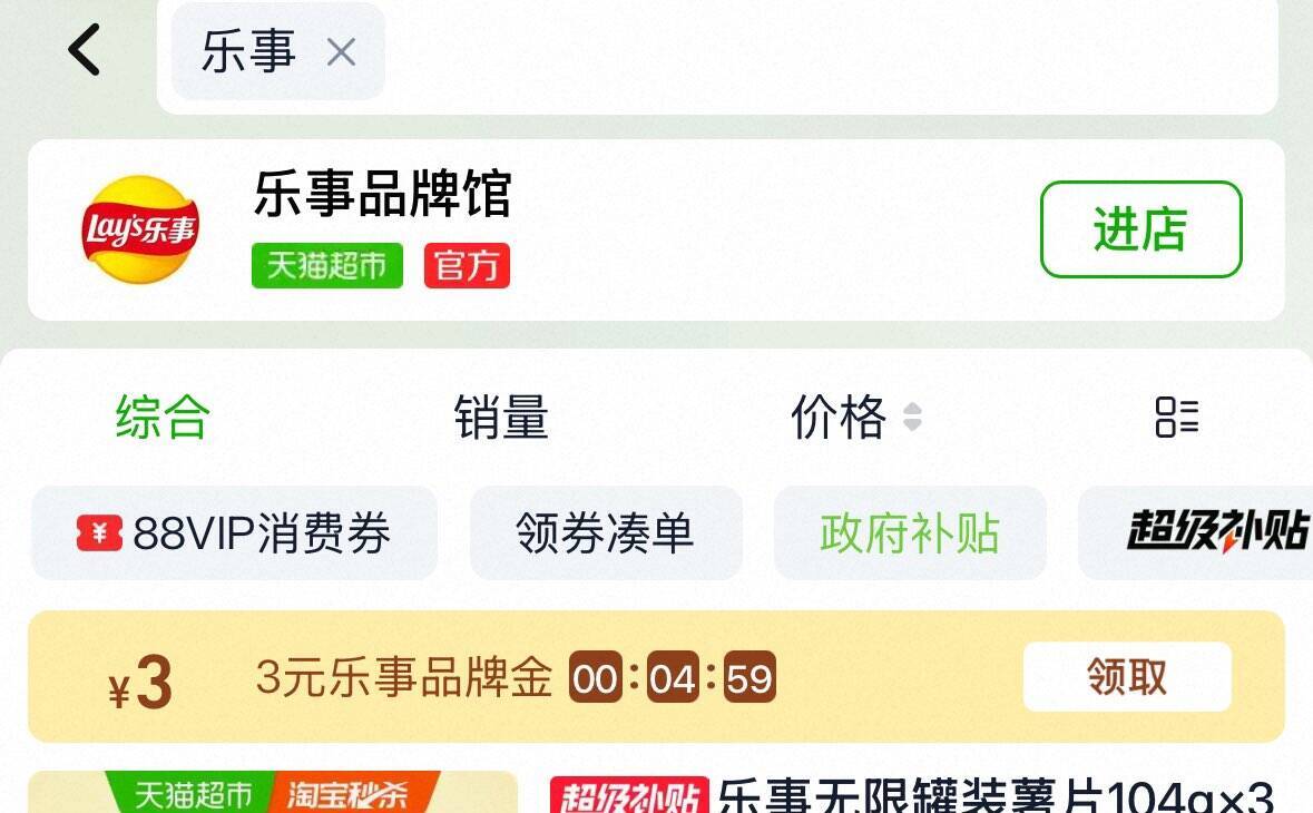 超市首页搜乐事部分有3品牌金