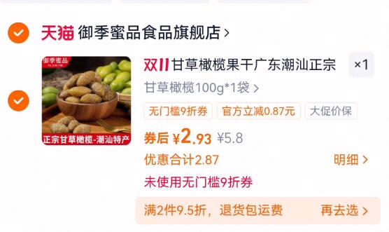 甘草橄榄100g*1袋
