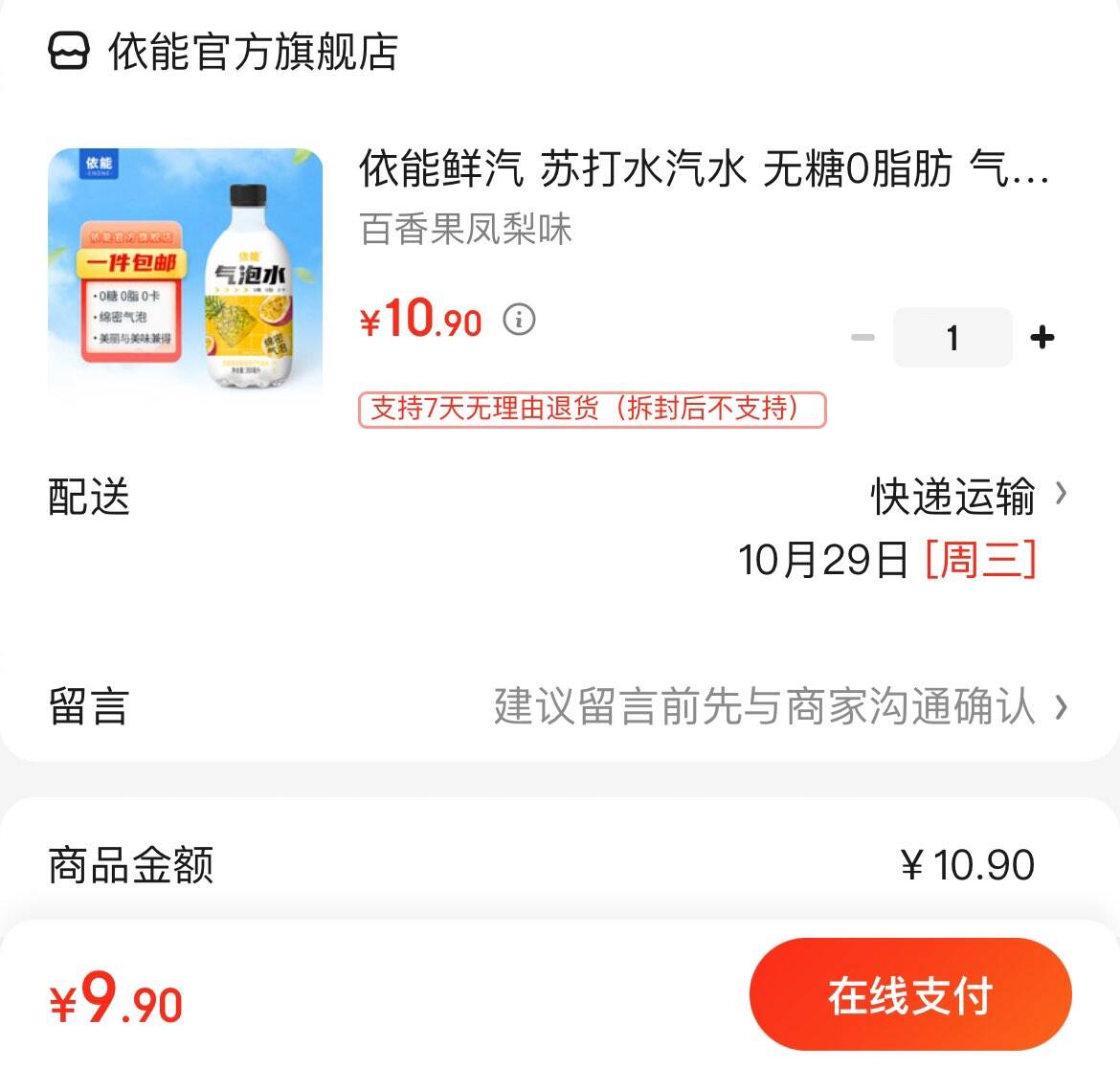 9.9亓 依能气泡水 300ml*6瓶