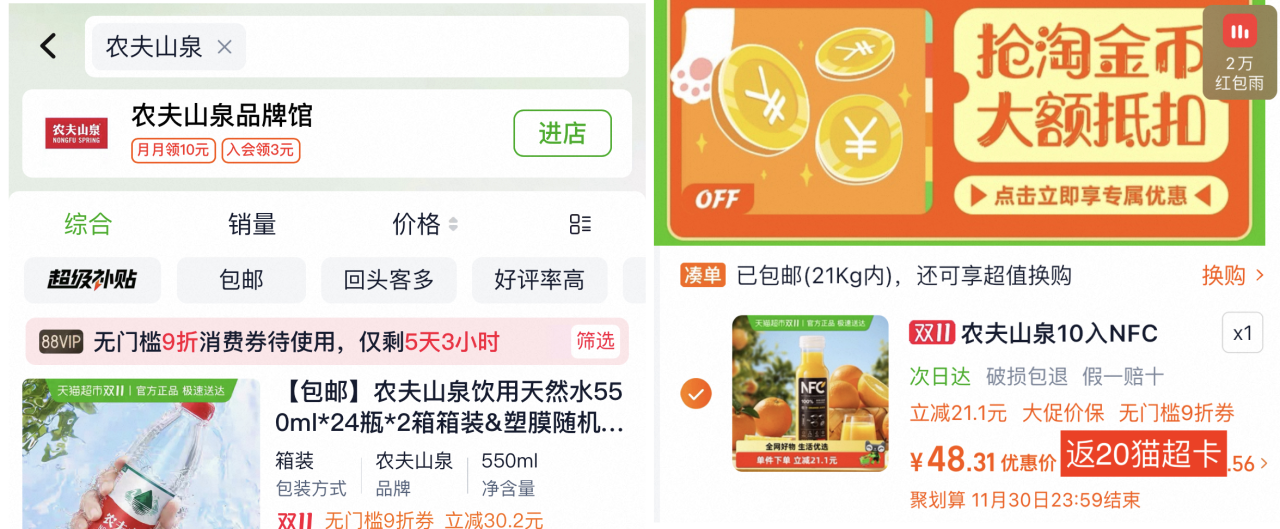 48亓-返20猫超卡=28亓,折2.8/瓶