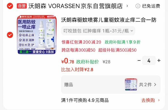沃朗森 驱蚊喷雾儿童驱蚊液止痒