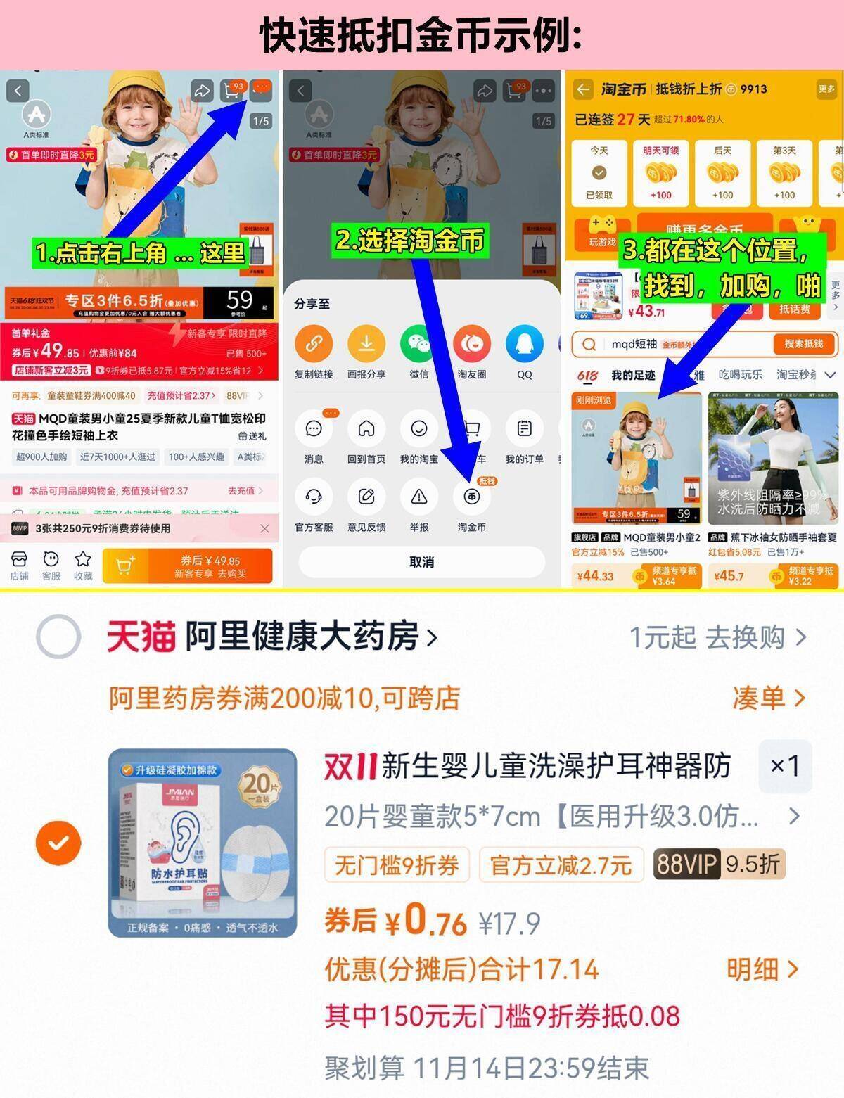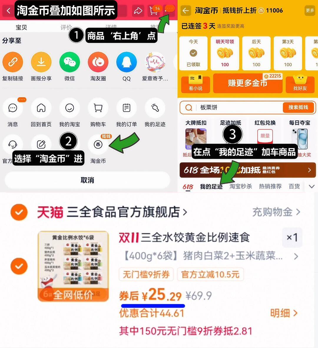 1、领奍收藏,点右上角进淘金币