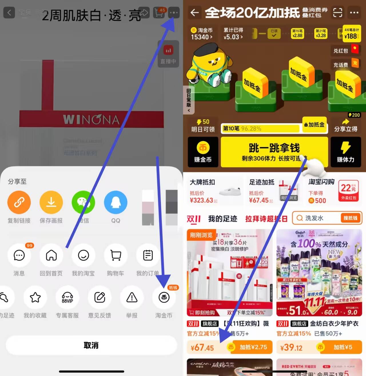 1、复制链接进入淘宝领取淘金币