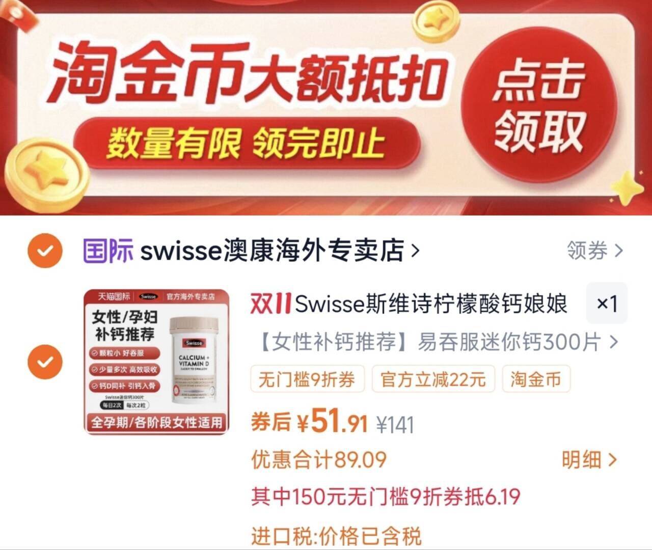 Swisse 娘娘钙迷你钙片300粒