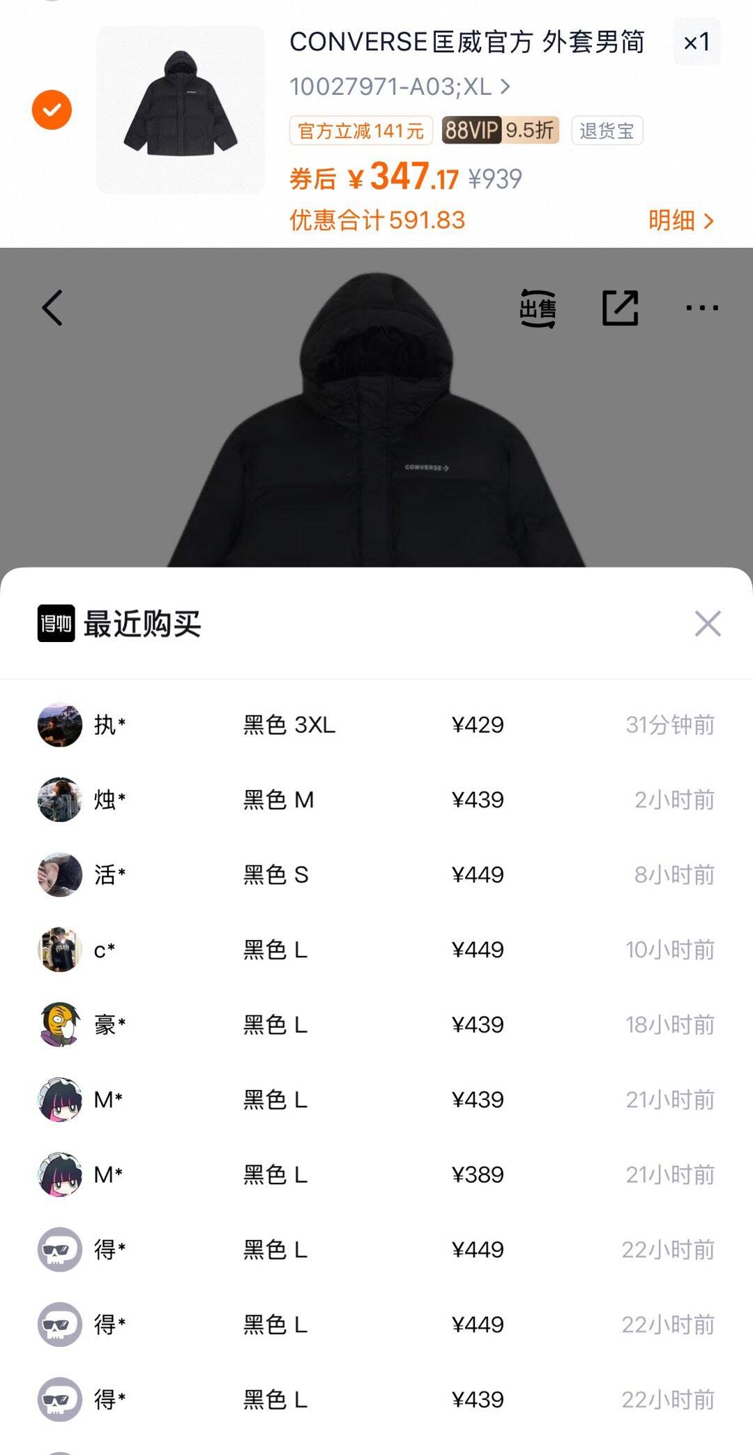 匡威羽绒服领券单拍不需要凑单