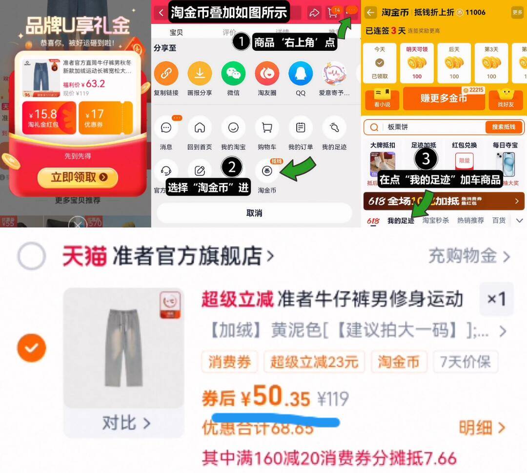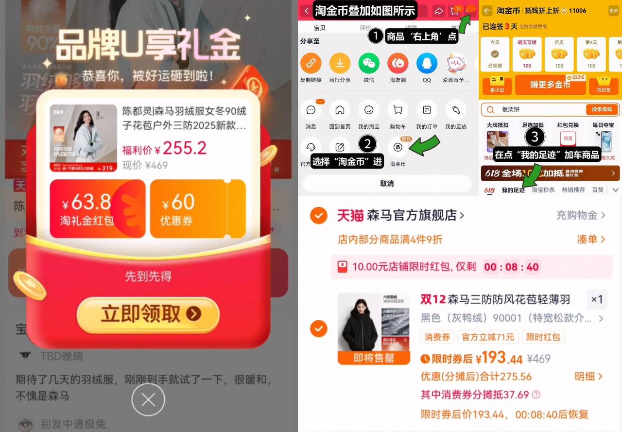 2、~如图右上角叠“淘金币”加车~