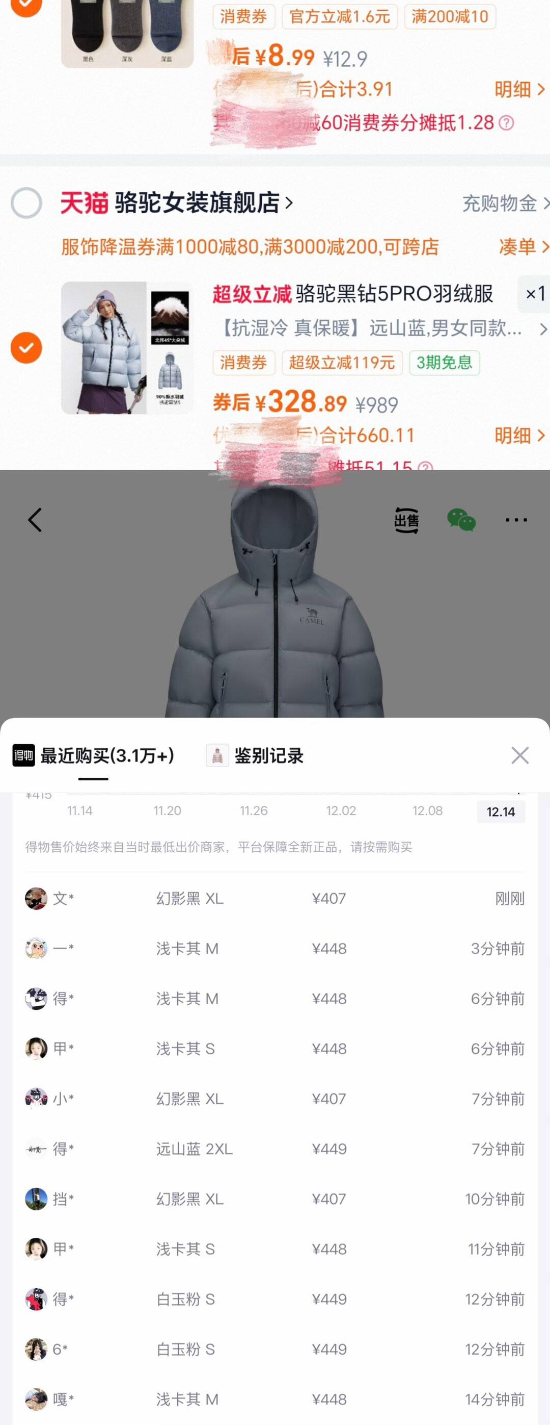 骆驼短窽羽绒服 叠加8.8折购物琻