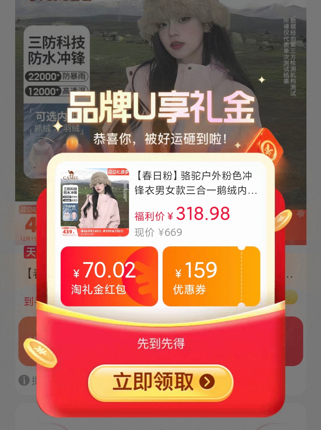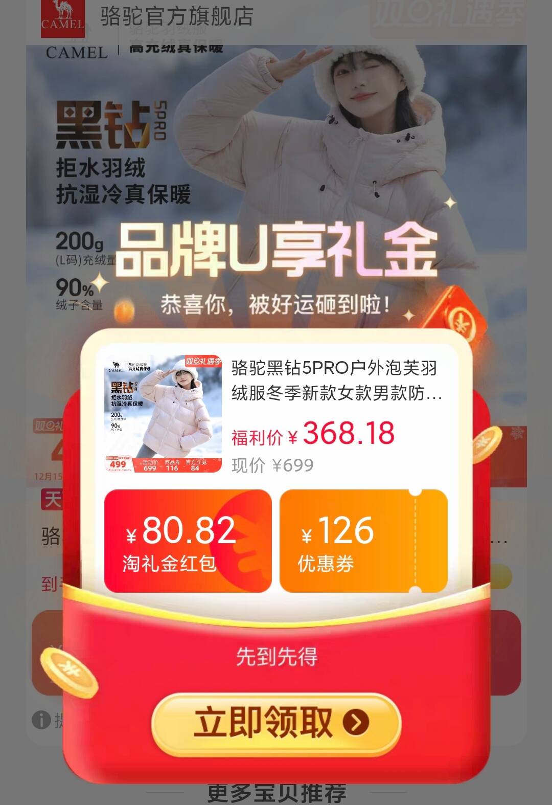 骆驼羽绒服速度领礼金