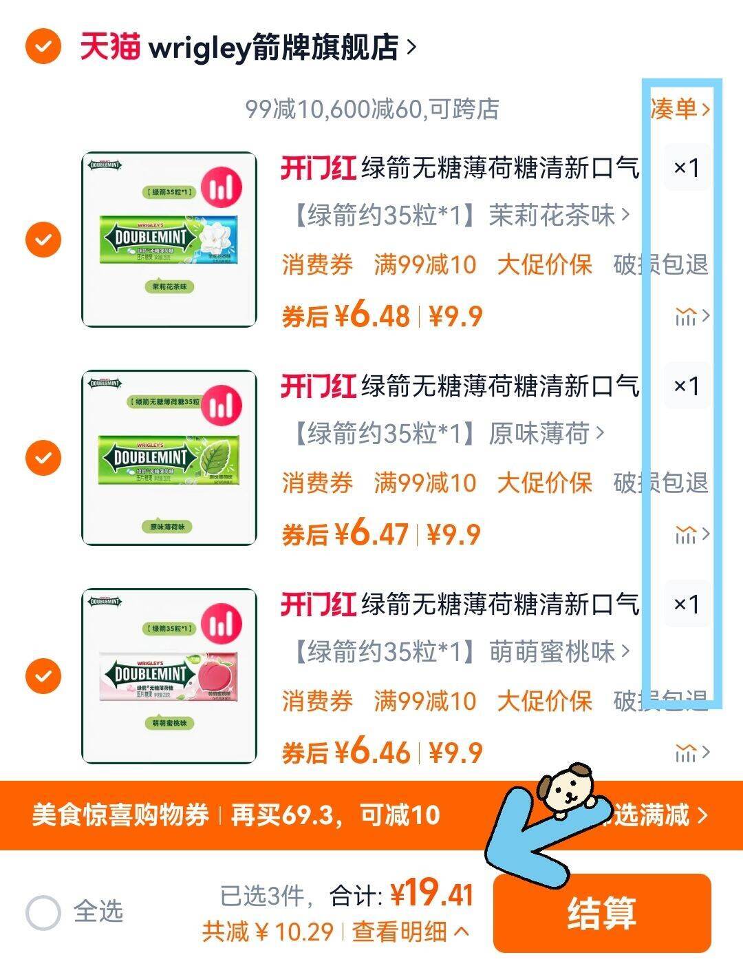 【绿箭】无糖薄荷糖共35粒*3瓶