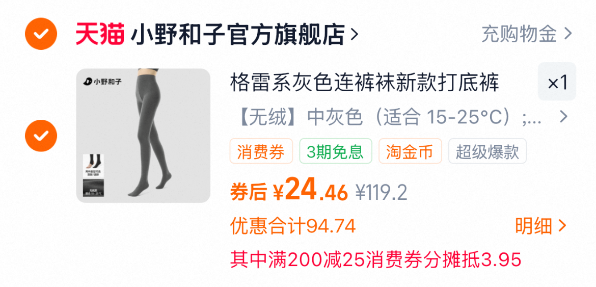 小野和子显瘦打底裤到手24.46元