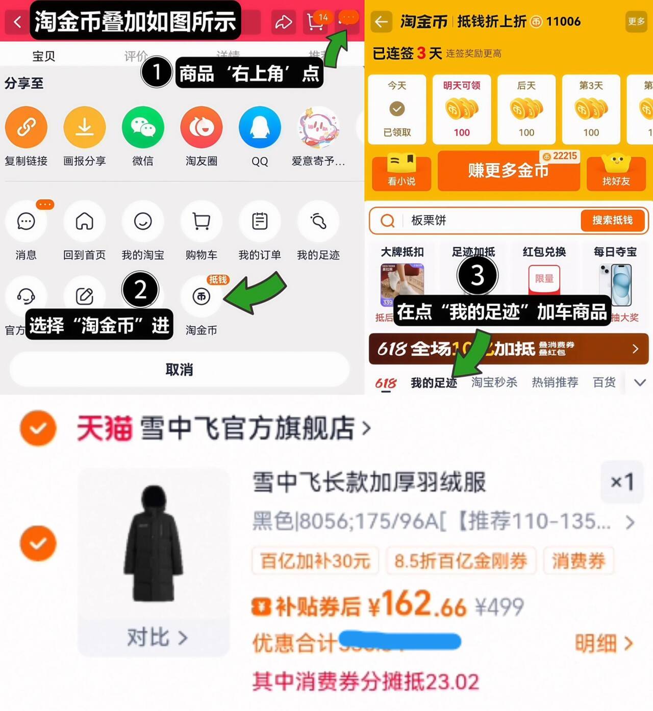 2、如图右上角叠“淘金币”加车
