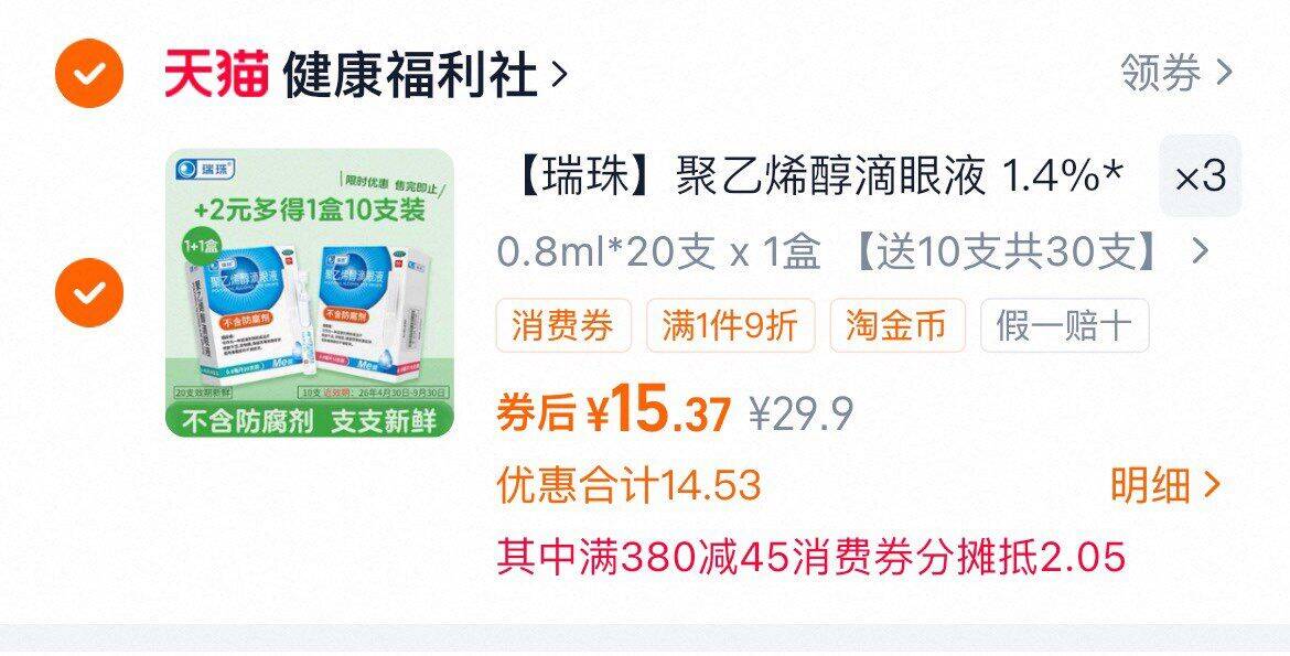 瑞珠聚乙烯醇滴眼液共90支 45.9亓