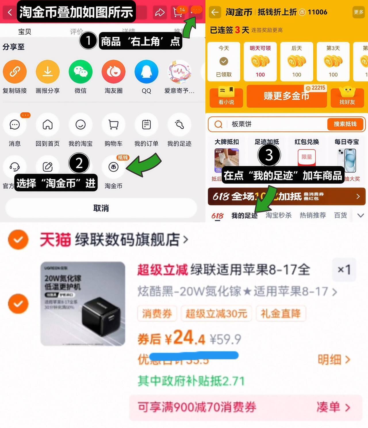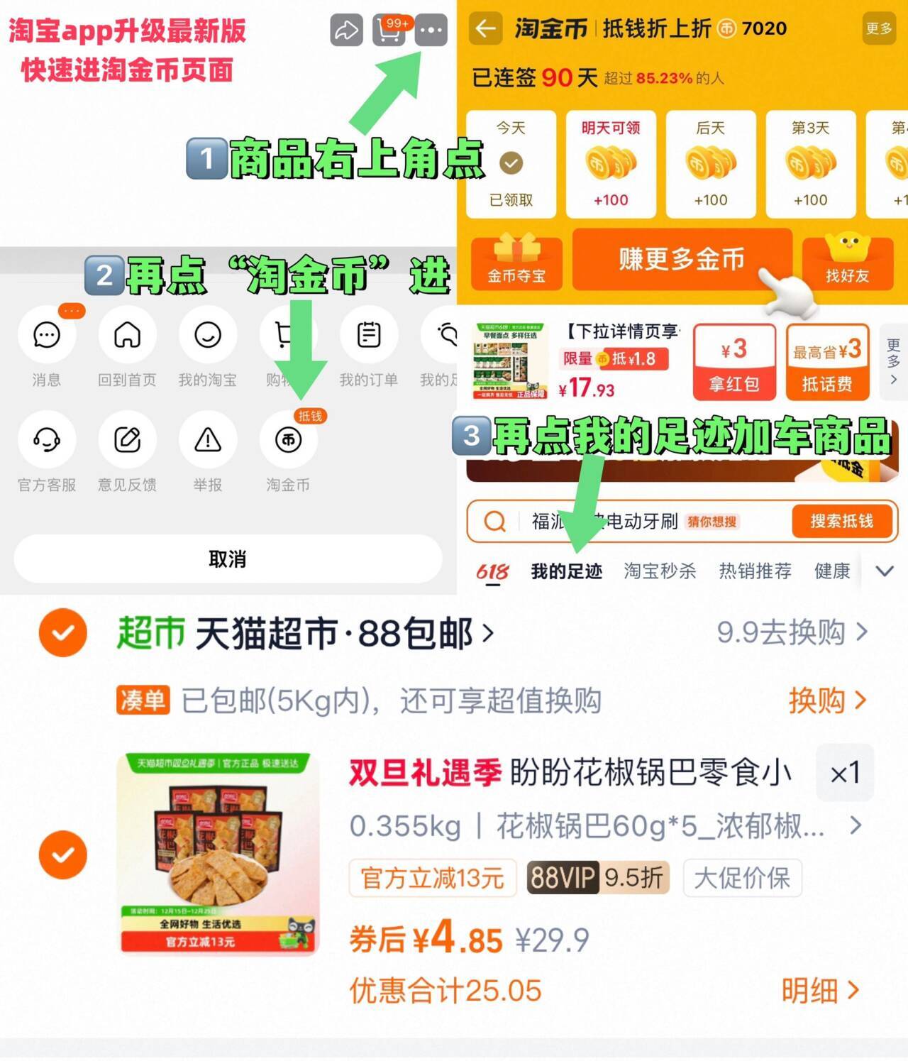 如图右上角叠“淘金币”加车