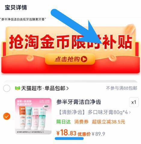 如图右上角叠“淘金币”加车