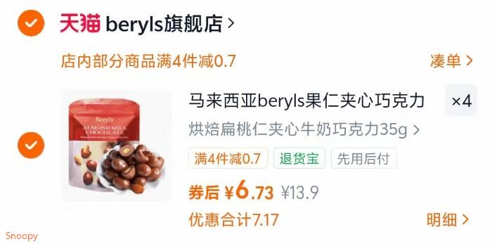 倍乐思巧克力豆35g*4元26.9