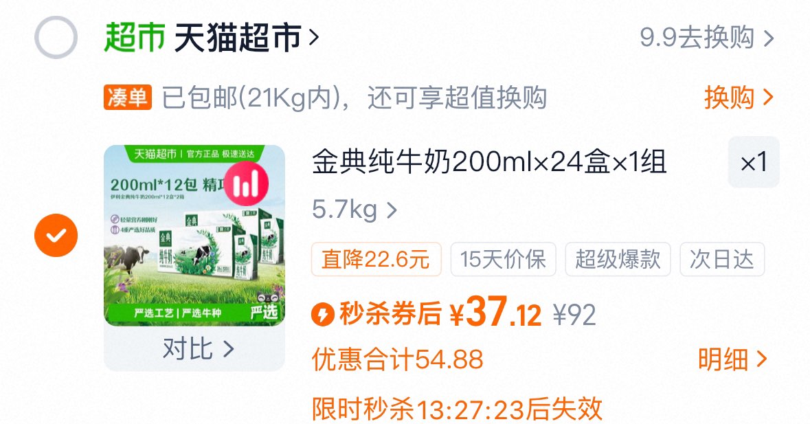 部分地区赠:伊利鲜牛奶235ml*4瓶