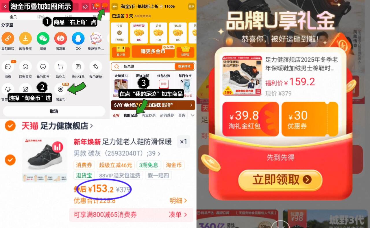 111亓起无券叠礼金 6淘金币