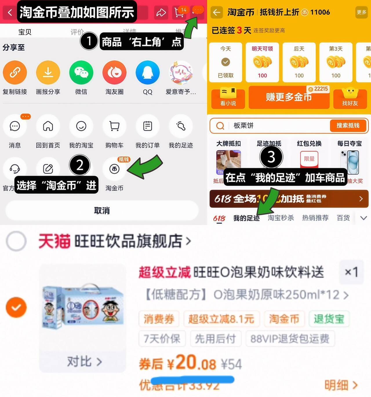 如图右上角叠“淘金币”加车