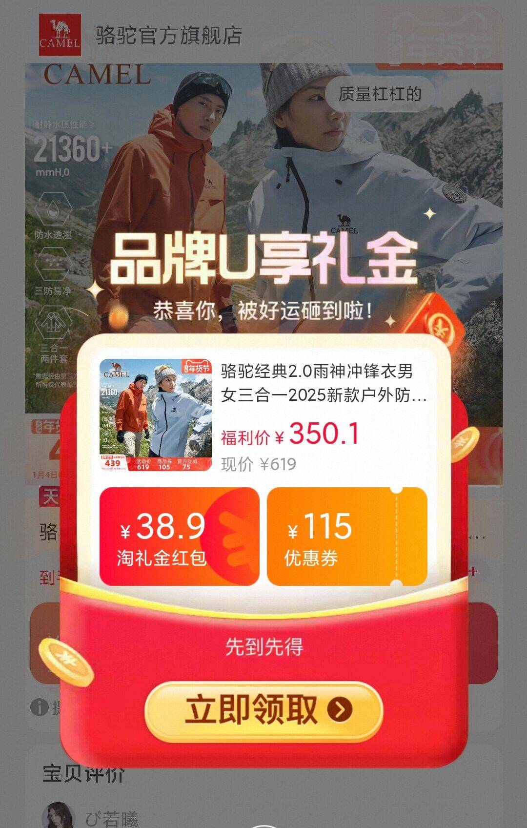 骆驼经典2.0雨神三合一冲锋衣!!!抓紧先领礼金,限量的,随时结束!!