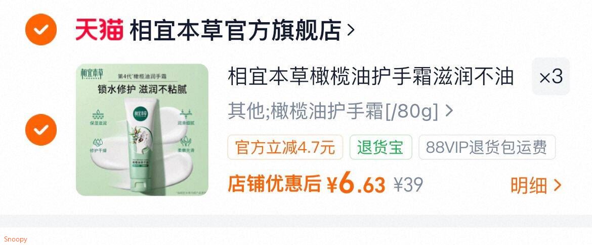 相宜本草 橄榄油桃胶护手霜80g