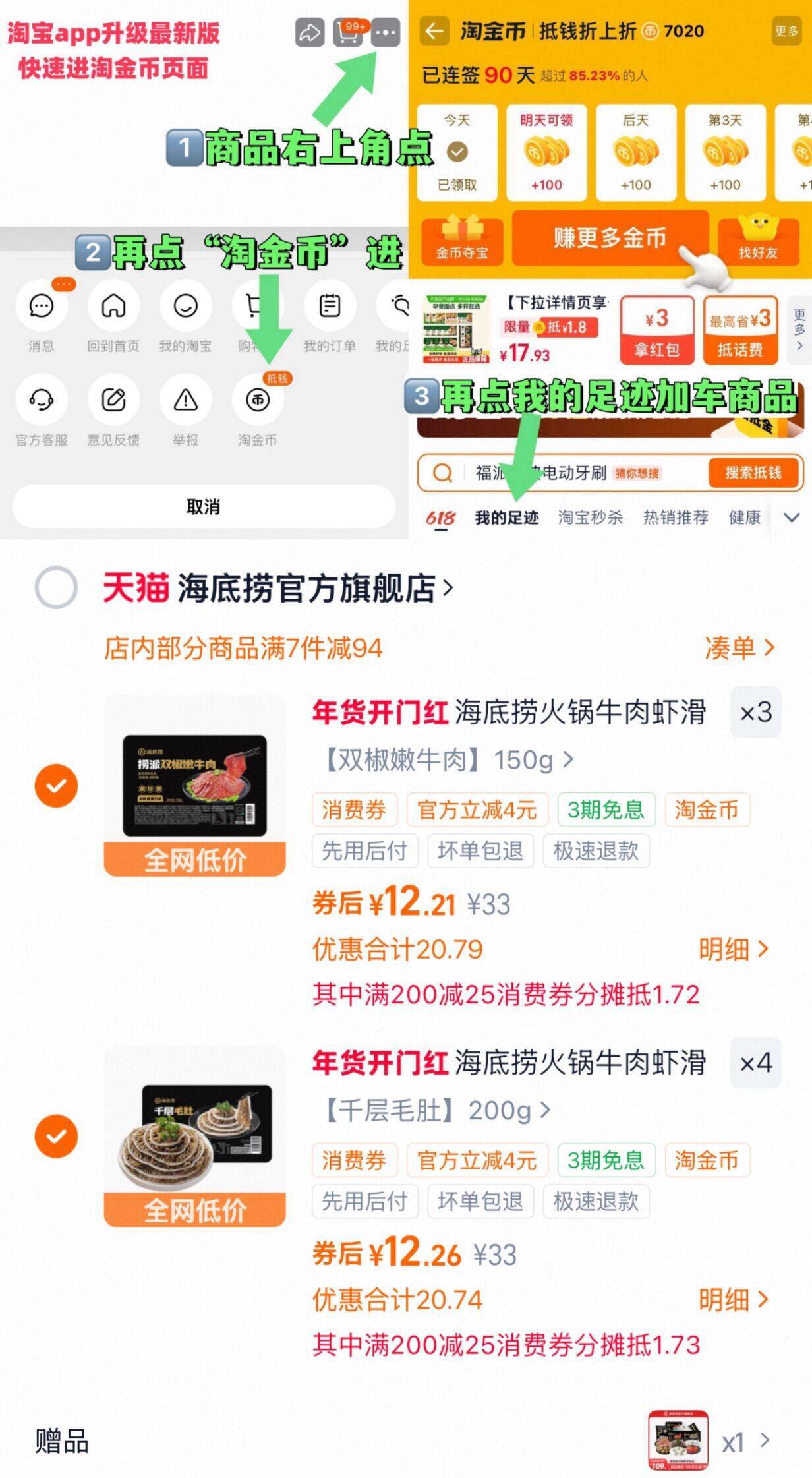 2、下拉详情页淘金币会场加车1件