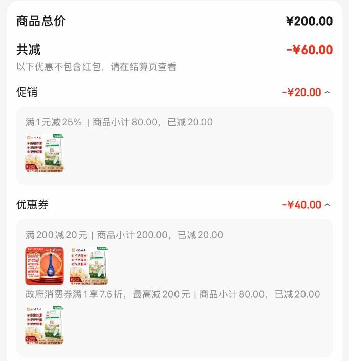 商品下政府补贴券,拍2件,每件16亓