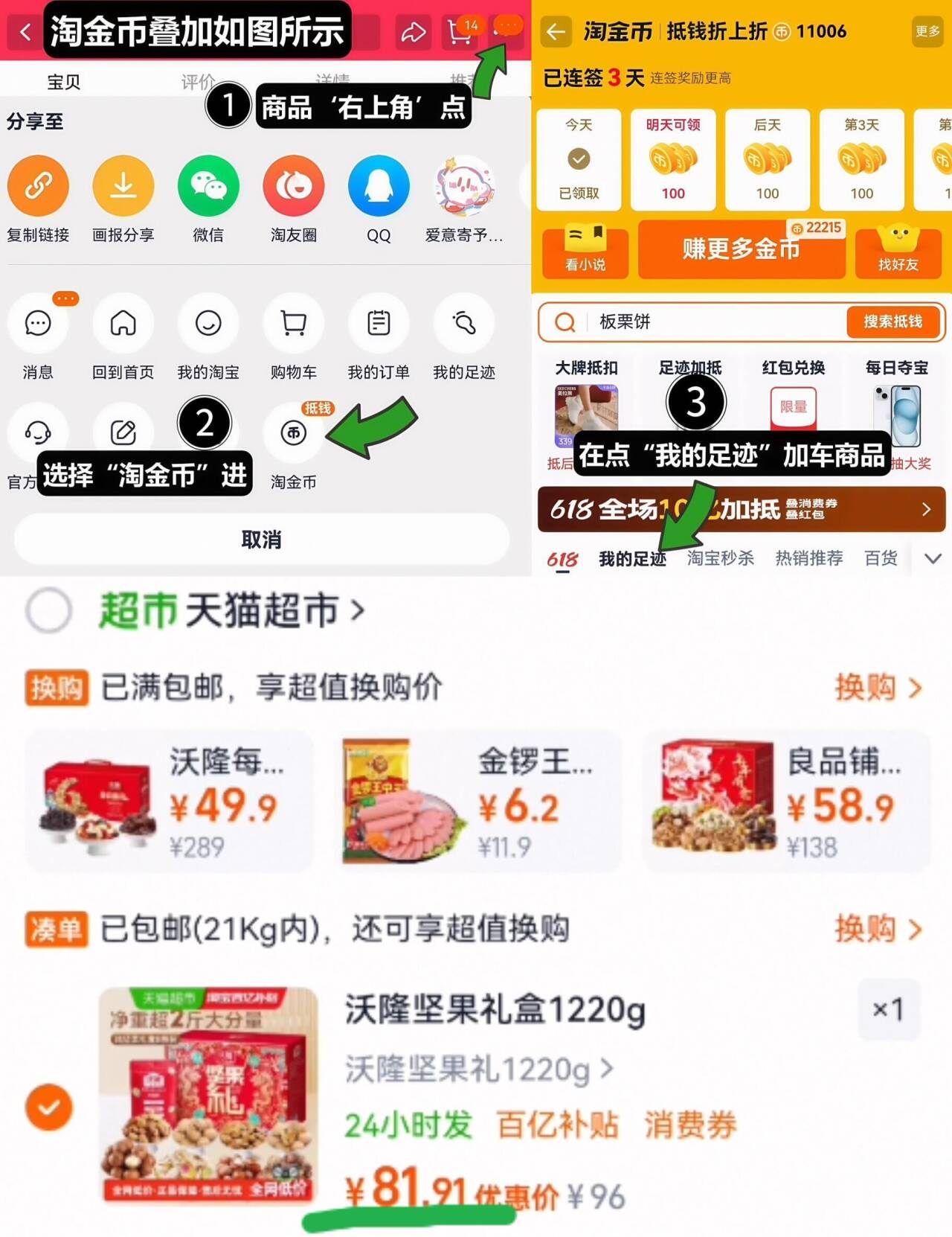 2、如图右上角叠“淘金币”加车1件