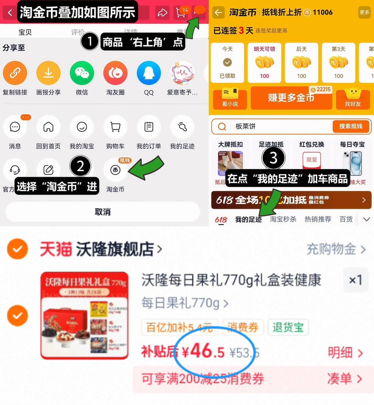 右上角叠“淘金币”加车拍下