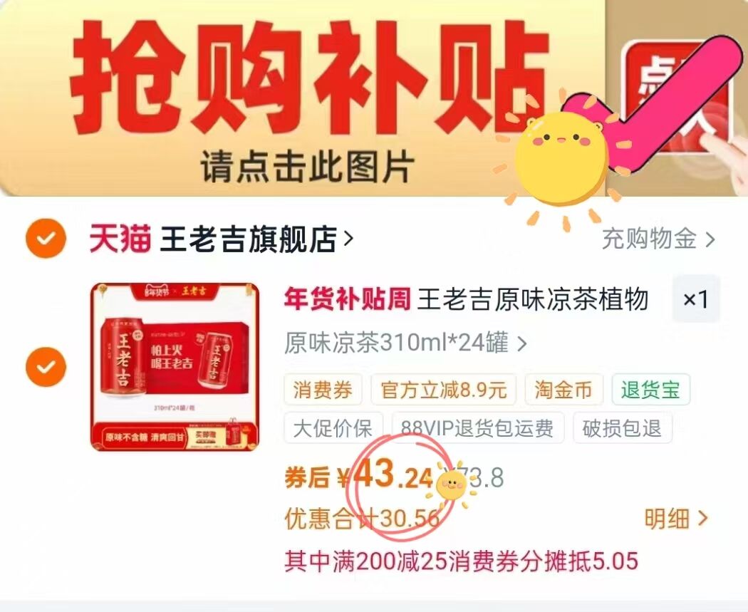 王老吉凉茶310ml*24罐 到手43元