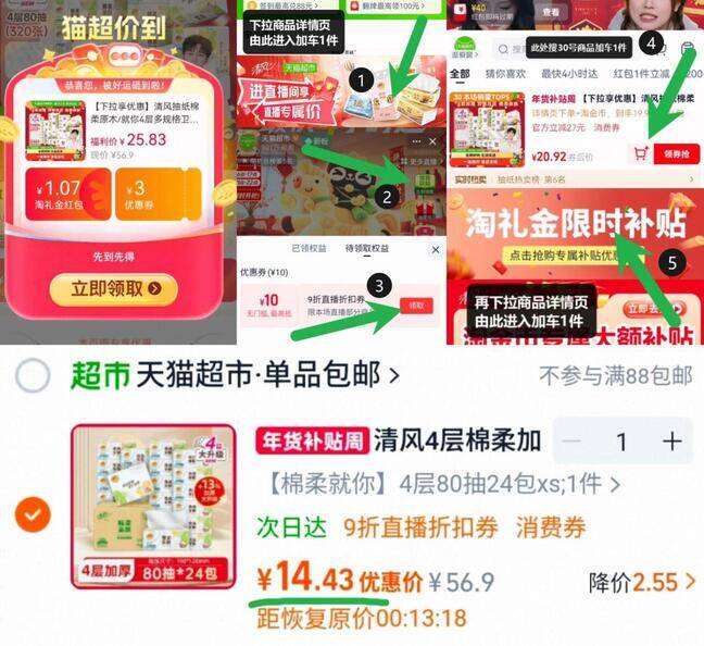4、再下拉商品详情进金币会场加车1件
