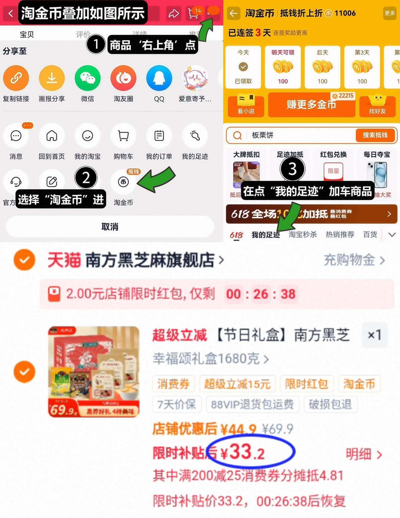 2、如图点右上角3个点选淘金币
